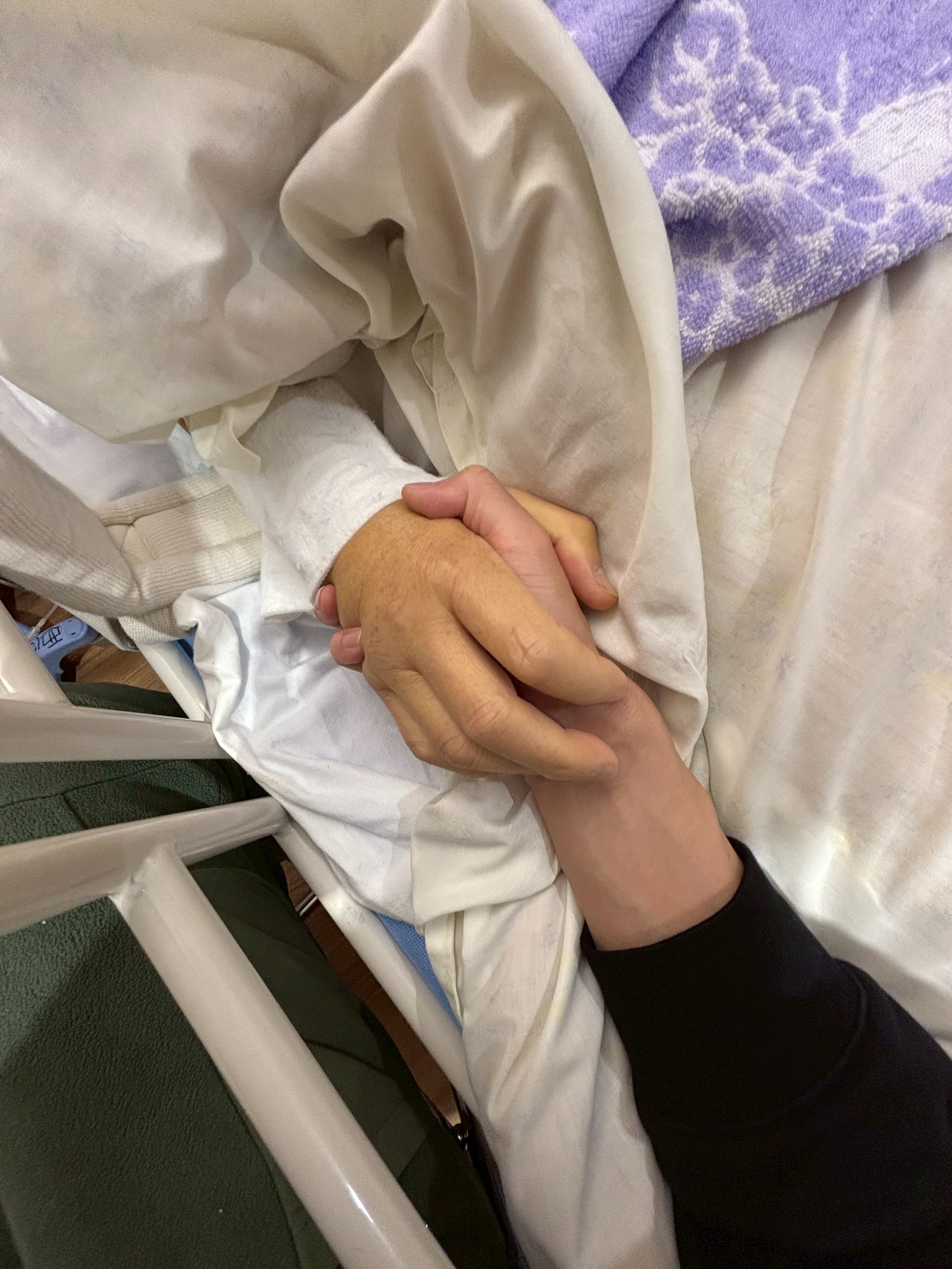 父の手を握りながら
